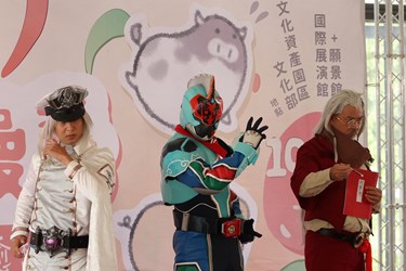 台中市政府新聞局今(23)日於文化部文化資產園區舉辦開幕記者會,邀請此次參展作者包含執業之餘斜槓成為漫畫家的雷亞、白日雨等醫生參與,而參展講師影繪、Salah.D、漢匠模型白鬍渣等人更自主COSPLAY盛裝出席。為呼應今年主題,開幕記者會上特別安排白日雨醫生與策展人暨台灣動漫畫推廣協會理事長蘇微希分享20字暖心箴言動物小卡,從醫者角度解析身心靈的療癒處方箋,邀請民眾到展場內領取專屬的「處方箋動物小卡」。