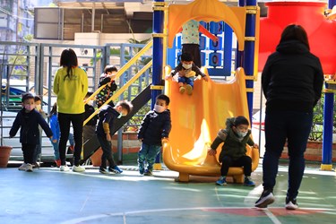 所有人進入幼兒園都需執行防疫三步驟,包括量體溫、消毒及戴口罩,另也備妥足量的防疫物資,包括口罩、洗手用品、額溫槍及消毒用品等。
