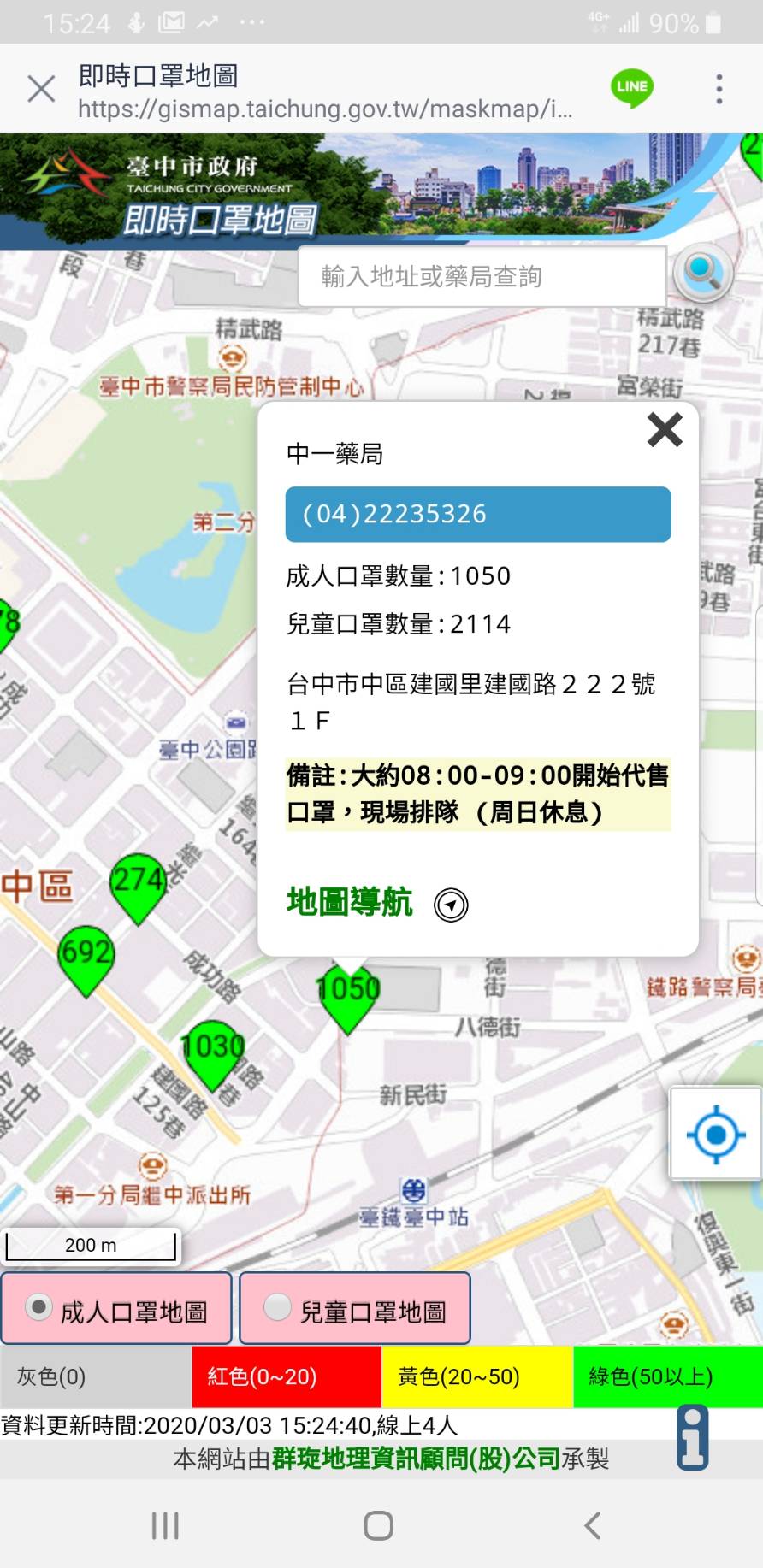 查口罩還可搭配導航! 「台中即時口罩地圖」全面再升級