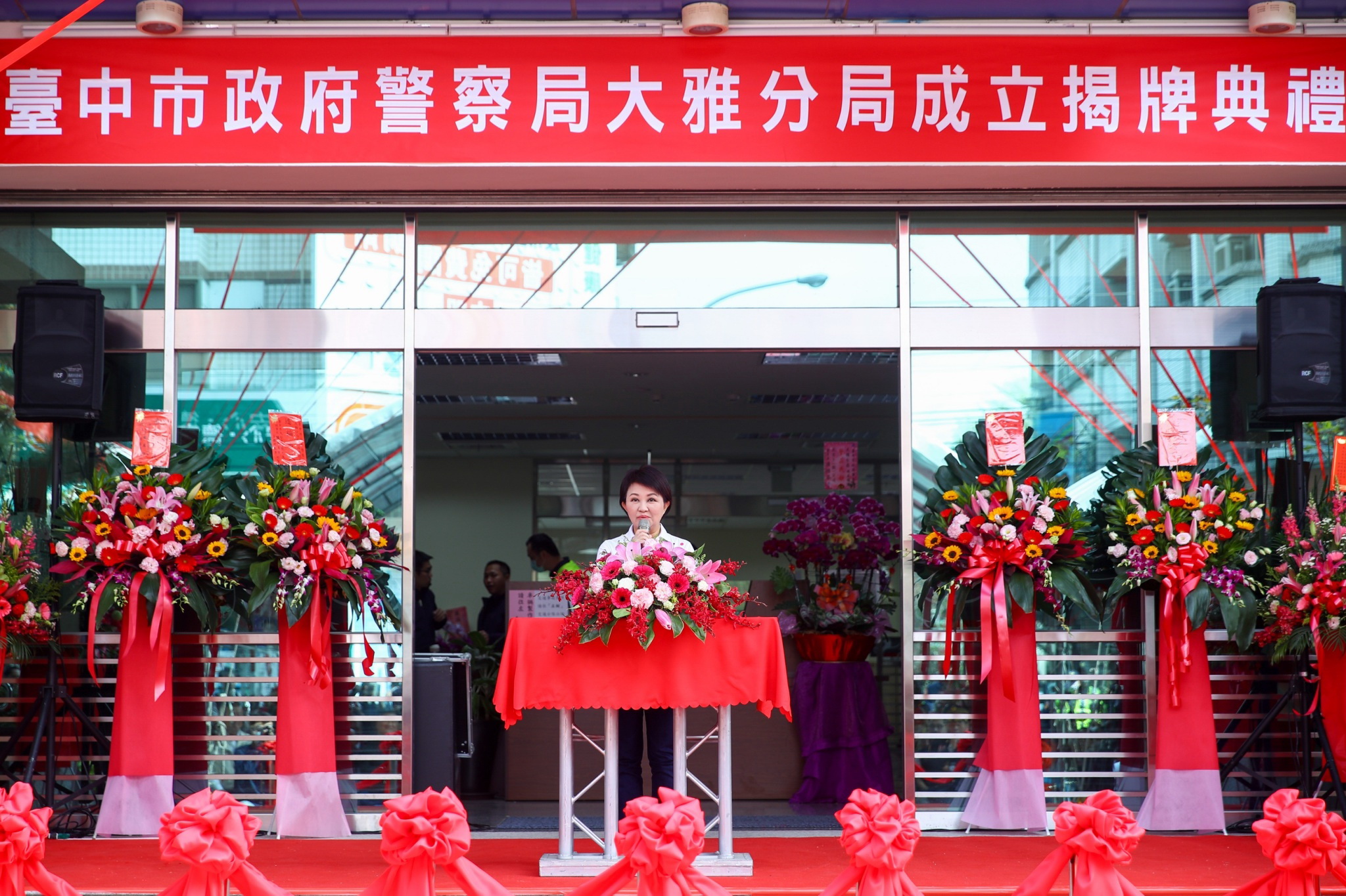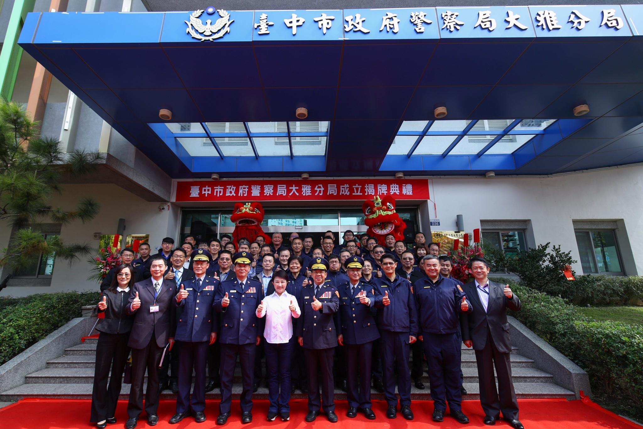警政服務里程碑!台中市政府投入2.5億元,從覓地、編列預算到購地興建,歷經3任市長6年時間,今(11)日正式成立大雅分局,轄管大雅區及潭子區。市長盧秀燕表示,大雅分局成立後,將讓大雅、潭子居民獲得更充裕、即時的警政資源,全面提升服務效能,打造安全宜居家園。
