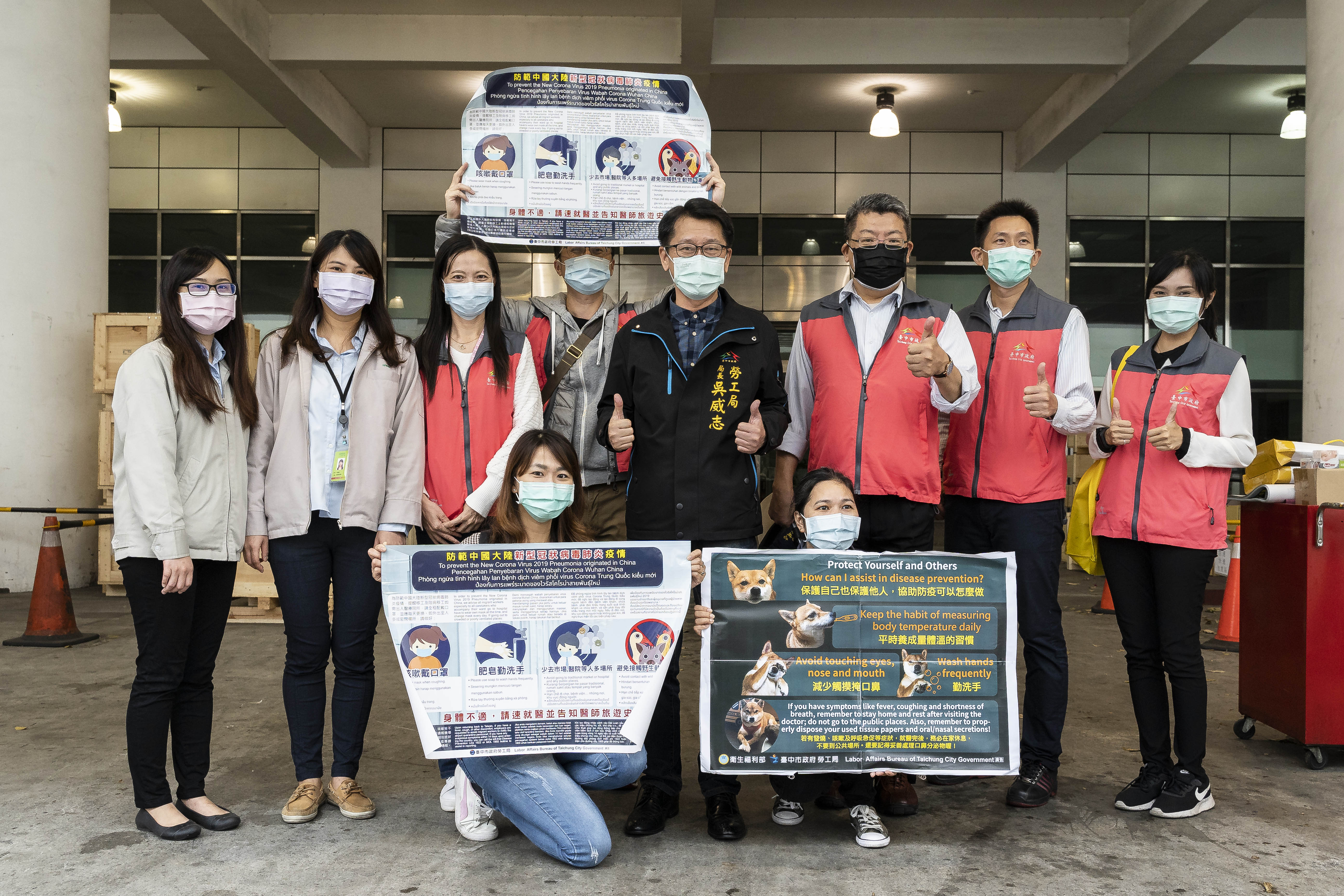 勞工局說明,此次巡迴訪視,市府除印製四國語言防疫宣導海報,供雇主及仲介索取張貼外,也持續向移工宣導免付費防疫專線1922或1955勞工諮詢申訴專線等資訊,並請雇主協助向移工宣導我國購買口罩的管道及可購置數量等相關資訊、提醒移工出入公共場所應戴口罩、使用肥皂勤洗手、注意自身健康狀況等。
