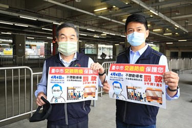 黃副市長在交通局長葉昭甫陪同下前往台中轉運中心,並上公車向搭車民眾宣導新規定,黃副市長指出,4月9日中央口罩實名制升級後,成人口罩購買數量增為14天9片,兒童口罩增為14天10片,民眾才有足夠數量來確實遵守相關規定,因此,目前針對未戴口罩民眾採柔性勸導,司機將予以拒載,如勸導不聽者才會依傳染病防治法開罰。
