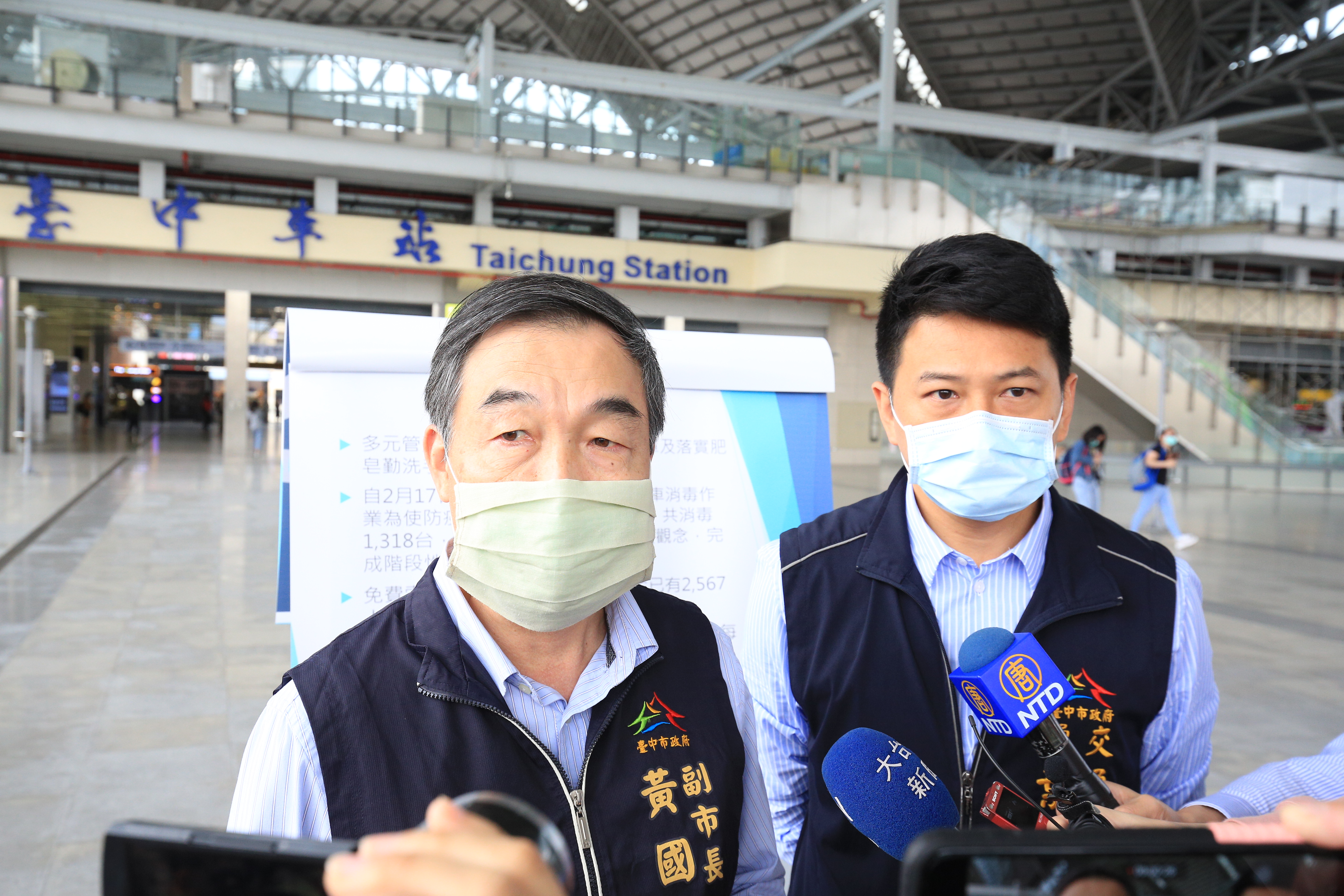 新冠肺炎疫情嚴峻,中央規定民眾搭乘大眾運輸應戴口罩,勸導不聽可開罰3000元至1萬5000元。台中市政府積極配合中央政策,副市長黃國榮今(4)日率隊至台中轉運中心視察宣導,並了解清明連假交通疏運及各項防疫措施;黃副市長表示,今日觀察民眾多有戴口罩乘車,因應中央口罩實名制4月9日起升級,目前台中市先採柔性勸導,勸導不聽才會開罰,盼民眾配合共同防範疫情。