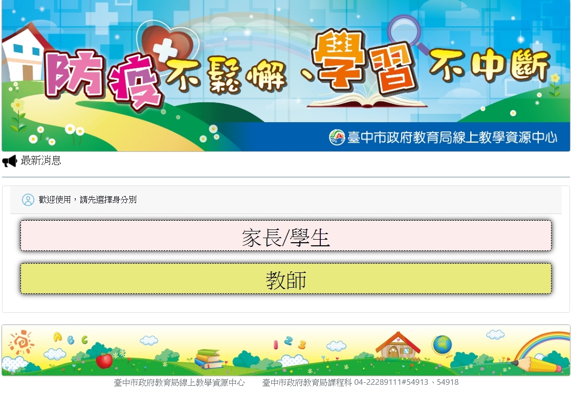 此外,為避免學校大規模停課影響學生學習,教育局已彙整線上學習資源,家長、老師、學生可利用線上教學資源中心(http://elearning.st.tc.edu.tw/id_select.php)自主學習,讓學子們防疫期間學習不中斷。(4/7*23)*教育局