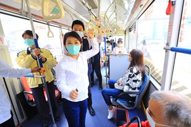 因應新冠肺炎疫情,中央流行疫情指揮中心4月3日宣布搭乘大眾運輸應戴口罩,台中市政府配合中央政策,當日立即宣佈在台中市搭乘公車應全程佩戴口罩,並禁止於車內飲食。市長盧秀燕今(10)早親自搭公車視察,感謝駕駛員及乘客配合市府宣導,均全程佩戴口罩,遵守禁止飲食規範,讓台中疫情風險降低。