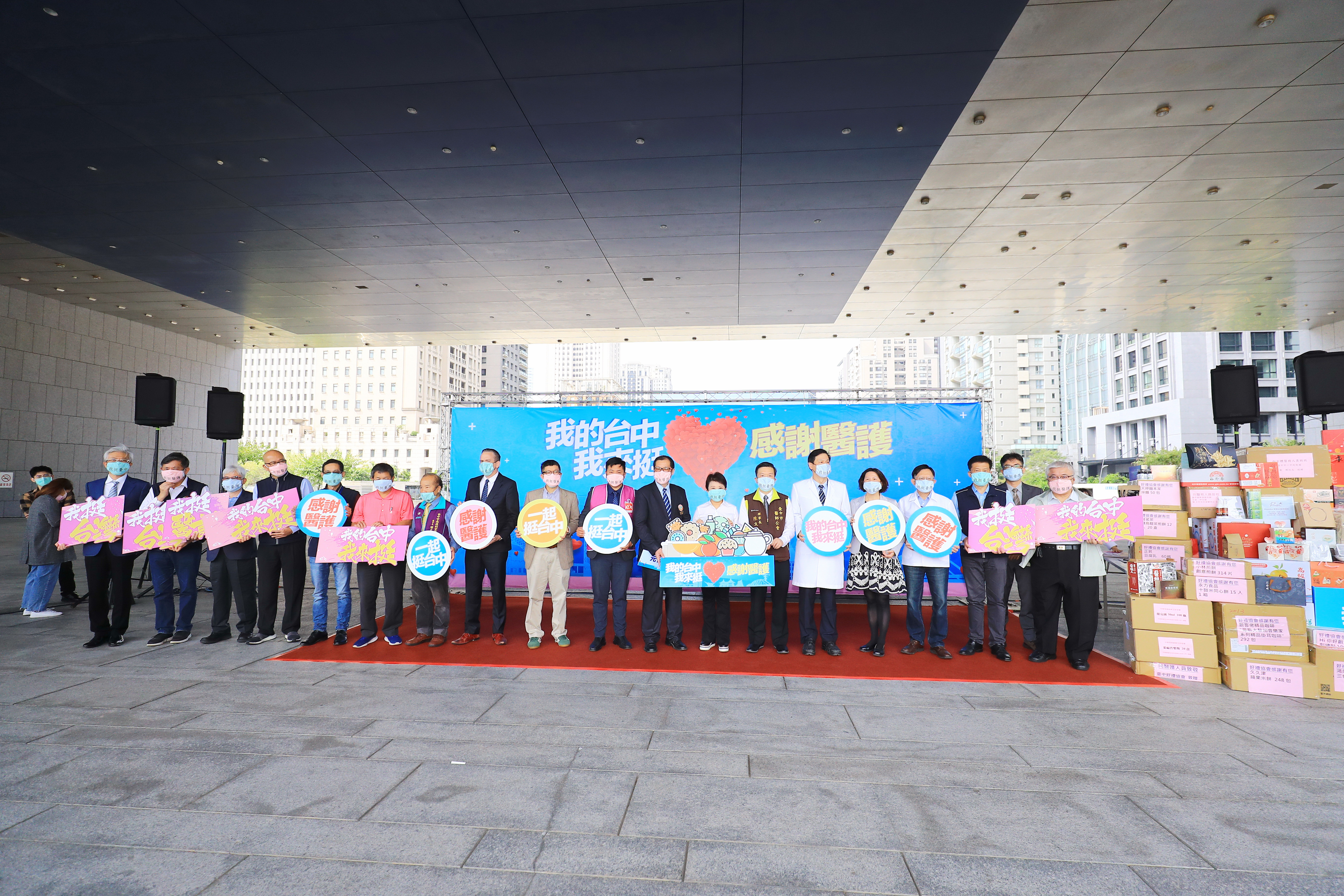 新冠肺炎疫情持續延燒,為感謝醫療人員堅守崗位,台中市超過80家企業、團體主動捐贈點心、飲料挺醫護,總計約50項、4萬5000個物資,透過行動為醫護加油打氣。市長盧秀燕今(15)日深深鞠躬向第一線醫護人員致敬,並感謝企業、團體的暖心義舉,期盼同心協力,一起打贏抗疫這場仗。