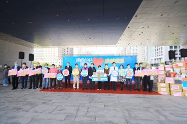 今天盧市長特別戴上寫有「我挺臺中」的口罩套參加活動,她說,口罩套是志工們集結愛心共同製作,表達對自己城市的認同與愛,也表達了對醫護的滿滿感謝。
