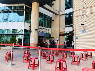 此次發放作業因應疫情,啟動防疫作業,地政局於事前提醒土地所有權人現場應全程佩戴口罩、配合入口量測體溫及消毒;在空間動線規劃上,除將發放地點改為地政局1樓外,並規劃單一通道請民眾依序進場核對身分及資料,等候區則依社交安全距離戶外1公尺為間隔單位劃設座位,遵守防疫規範,同時維護民眾權益。