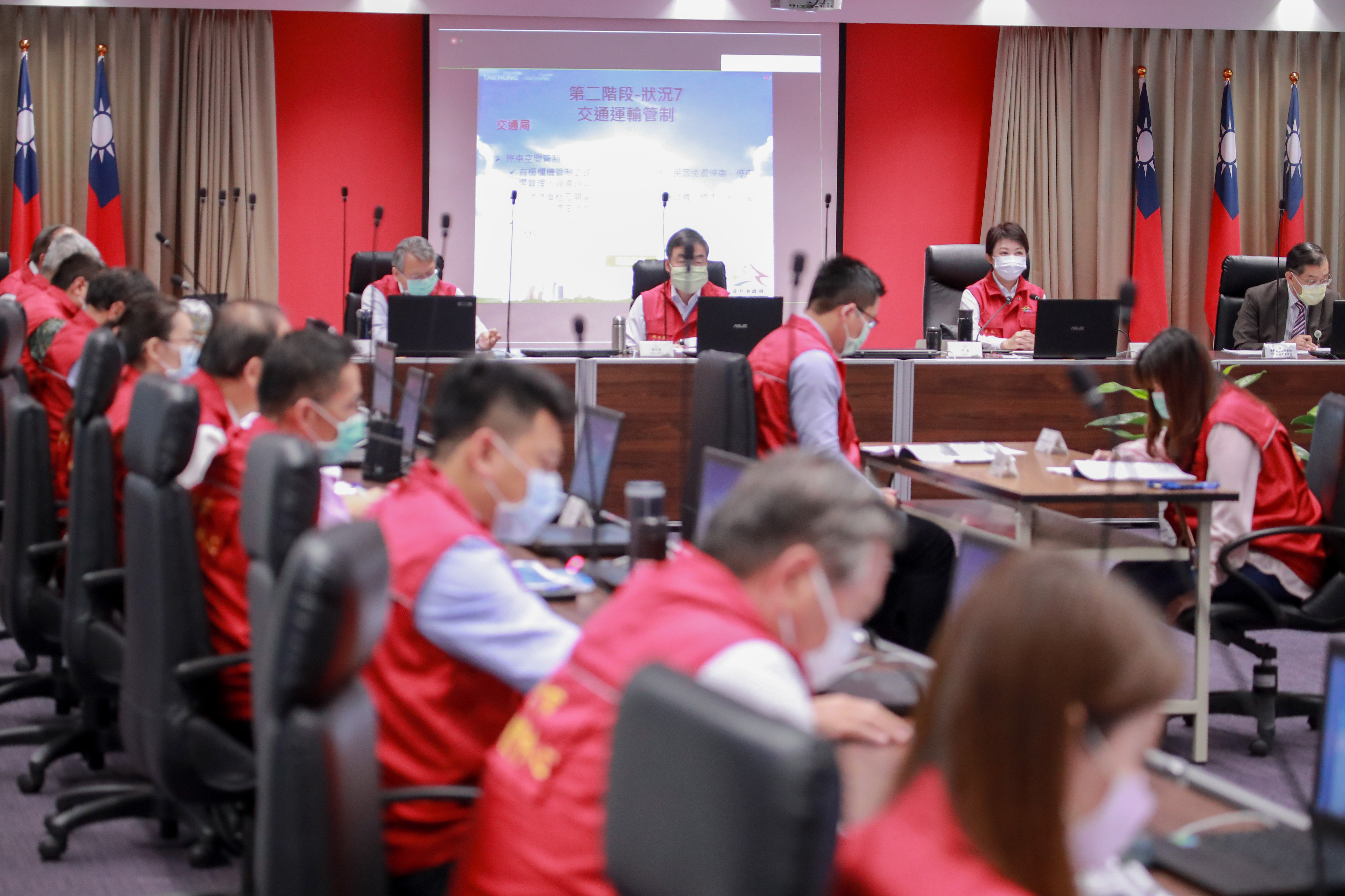 盧市長指出,今日的防疫兵推並非外傳的「封城演習」,市民仍可照常生活、人車照行,相信兵推結束後,台中要封城的消息就會不攻自破;她也強調,人民希望政府對疫情變化有所準備,而不是沒有準備,我們不會受到政治干擾,而是「做我們該做的事」,也相信一切防疫超前作為與部署,會讓市民有更多保障。