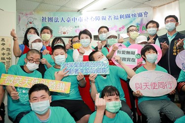 今日推廣活動,包括市長盧秀燕、社會局長彭懷真、市議員羅廷瑋、社團法人台中市身障者福利關懷協會理事長趙子妍、南區區長洪峰明、南區樹義里長莊郁雄等人均到場參與,氣氛熱鬧溫馨。