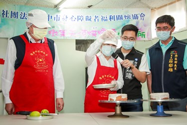 新冠肺炎疫情衝擊各行各業,社福機構營運也面臨挑戰,為推廣身障團體製作的糕餅產品,市長盧秀燕今(30)日化身糕餅師傅,親自上陣製作蛋糕,為台中26個身障機構產品掛保證。盧市長指出,公部門已優先採購身障福利機構所生產的各式產品,母親節檔期到來,呼籲民間單位響應採購,協助弱勢度過疫情難關。