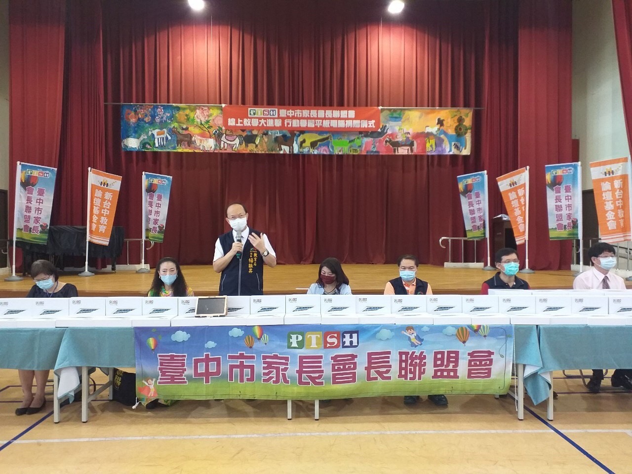教育局指出,教育局防疫超前佈署,為確保學生在無法到校期間充分利用科技設備,使課業不中斷,在全面調查全市各級學校後,屬低收入戶且家中無平板的學生數約2,800多人。因此,台中市家長會長聯盟會余理事長及相關團隊捐贈300台平板電腦供台中市弱勢學生使用。