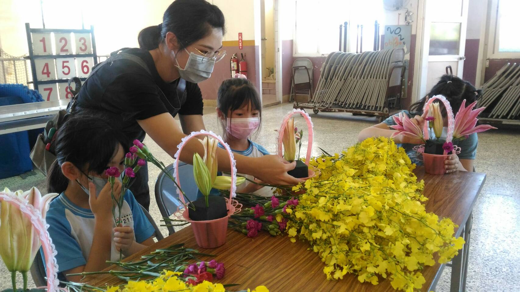 台中市花卉產業興盛,品質有口皆碑,今年卻受新冠肺炎影響,外銷受阻。市府農業局為振興花卉產業,陸續舉辦校園花藝課程,目前共155所學校報名,報名人數達24000人。今(3)日在外埔國小進行花藝課,吸引200位學生一起學插花,紛紛表示完成作品很有成就感,感到相當滿足。