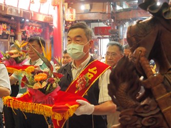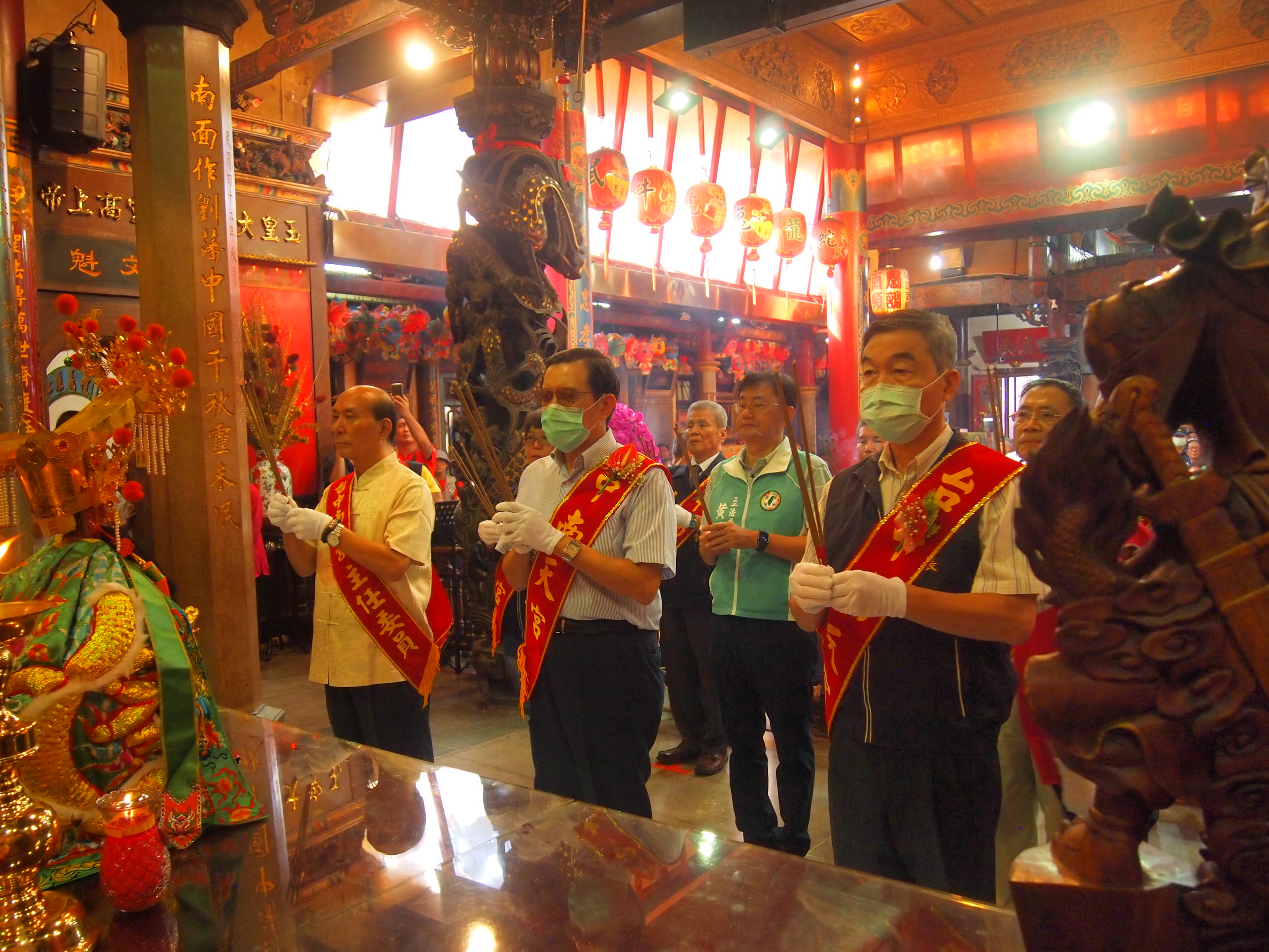 今日「祈福遶境佈施白米公益活動」,前總統馬英九、台中市副市長黃國榮、台北市副市長蔡炳坤、市府民政局主任秘書王淑貞、立法委員黃國書、市議員林碧秀、鄭功進、邱素貞、羅廷瑋;藝人馬國畢、董智森及多位地方人士代表皆到現場參加。(7/11*6)*民政局
