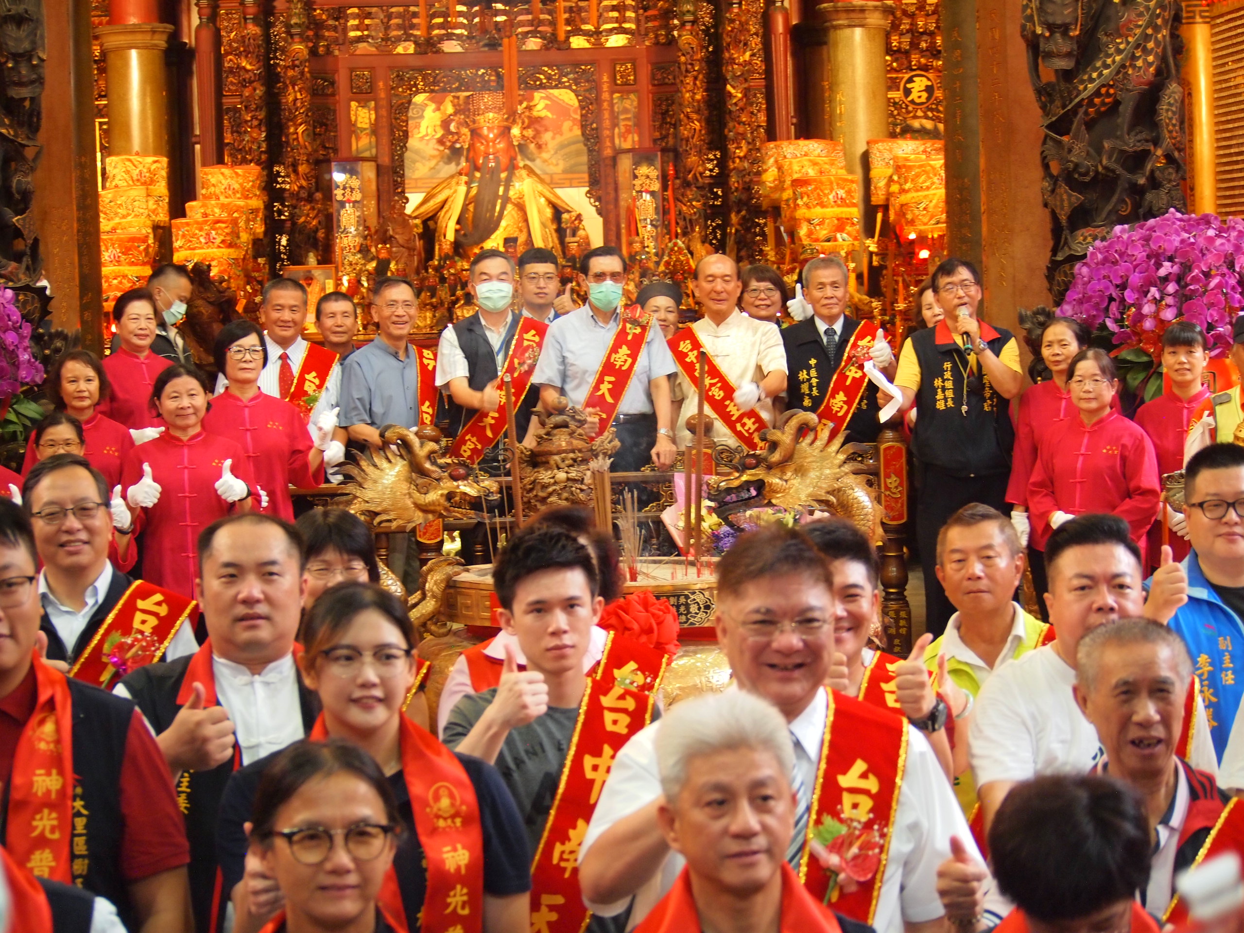 台中市副市長黃國榮表示,今日他代表市長盧秀燕前來參加典禮,並代為轉達對前總統馬英九關心台中的感謝。他個人在東區長大,南天宮是台灣十分重要的宮廟,尤其政府資源有限,南天宮除支持市府各項政策,還積極辦理公益慈善事業,不遺餘力推動教育、醫療、社會福利,為地方居民帶來心靈安定的力量,相信在市府與所有熱心公益宗教團體攜手努力下,台中未來的發展一定會越來越好。