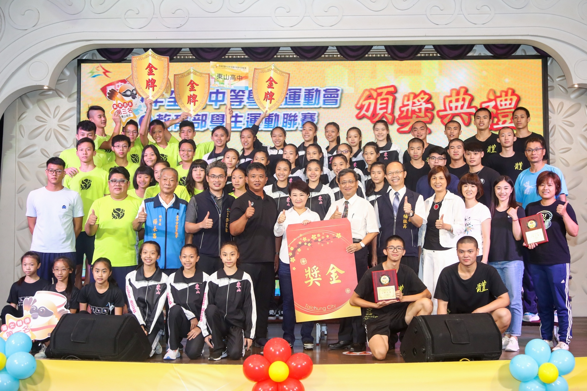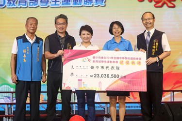 今年教育部主辦全國學生聯賽,台中學校大放異彩,其中,東山高中在籃球、排球和壘球聯賽場上列入全國前四強、中山國中也拿下棒球聯賽硬式組亞軍;全國中等學校運動會台中市代表隊亦表現亮眼,贏得金牌75面、銀牌63面、銅牌84面,更有10人創大會紀錄、6人破大會紀錄、6人破全國紀錄、6校勇奪團體總錦標第一名。