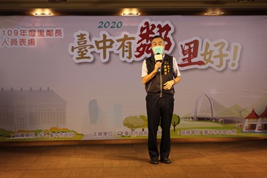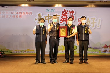 黃副市長表示,市府藉由表揚活動感謝全台中市625位里長及1萬2,524位鄰長。里鄰長是里鄰最佳精神支柱,角色極為重要,小從排解紛爭、大至爭取地方基礎建設,有賴里鄰長盡心盡力協助;今年新冠肺炎防疫期間,民政同仁除對每日對居家檢疫的民眾進行健康關懷,還積極完成各項防疫工作。今日公開表揚,盼激勵基層士氣,繼續展現專業、熱忱的精神。