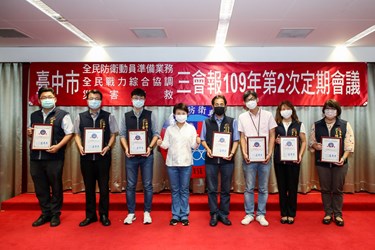 台中市政府今(18)日舉行「109年全民防衛動員準備、戰力綜合協調及災害防救三會報第2次定期會報」,除頒獎感謝國軍、警消、公民營單位在防疫、救災及動員準備工作上辛勤付出,也演練既有民防、緊急醫療、災防等應變機制;市長盧秀燕表示,台中防疫獲中央考評全國第一,防疫有賴平時各種應變演練、全體動員、市民防災意識,三方面多管齊下守護市民安全。