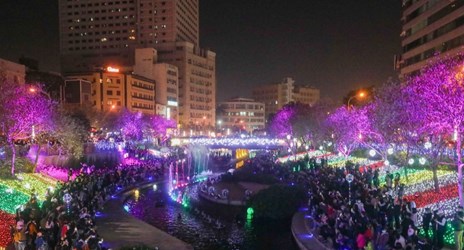 台中耶誕備受好評!台中市政府舉辦「2020台中好YA誕」,今年首度在柳川推出動態水舞燈光秀,營造浪漫震撼的視覺饗宴,多座造型燈飾更一路從舊台中火車站延伸至綠川、柳川,狂吸人潮,自12月11日點燈以來,首周就突破23萬人次參觀,鄰近店家紛紛表示業績成長直升,人潮湧入、買氣上揚很有感。