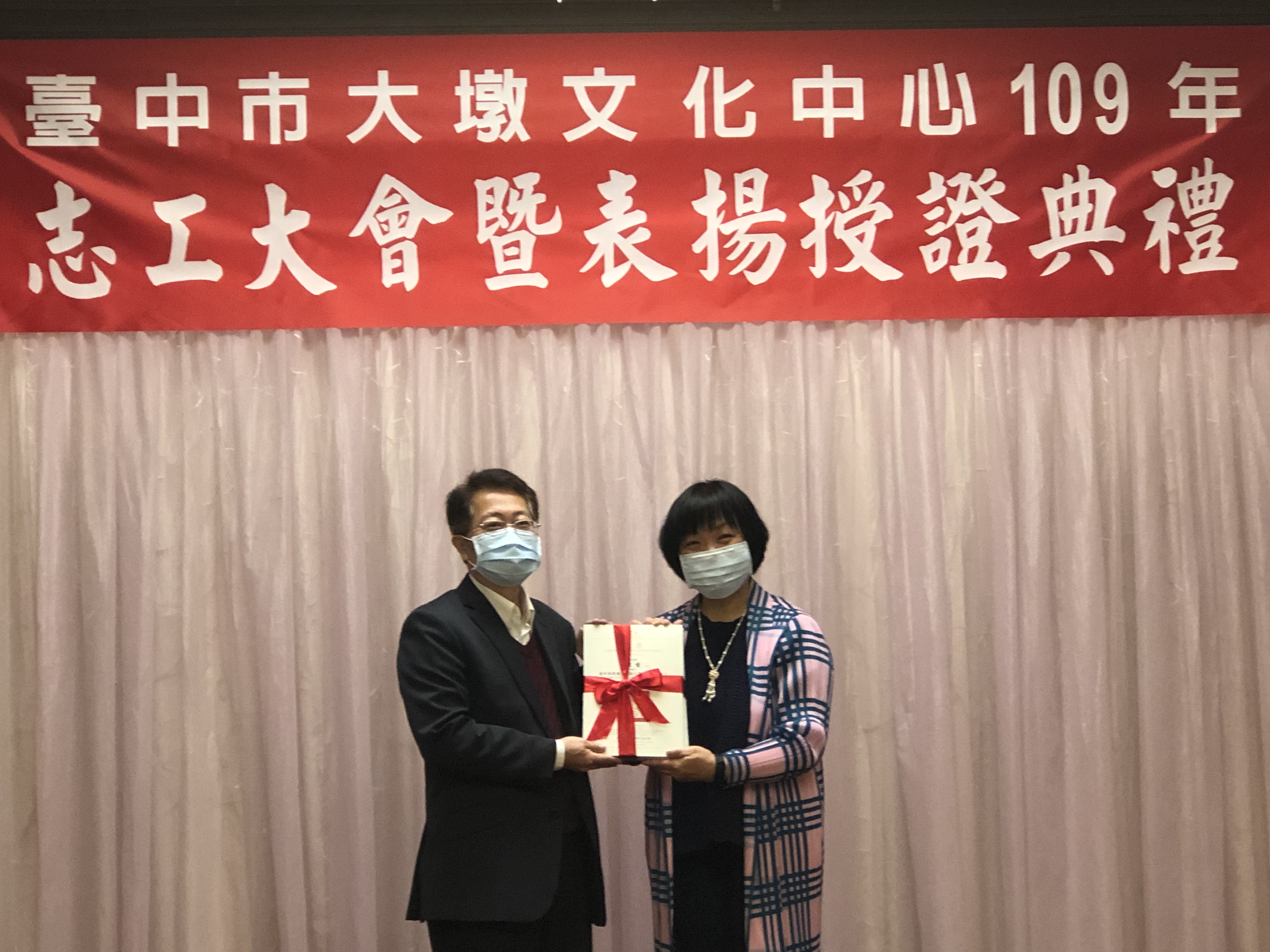 張局長表示,今年雖然受新冠肺炎疫情衝擊,但大墩文化中心是全國知名的藝文場館之一,參訪民眾連年單月逾23萬人次、業務十分繁忙,有賴於館內140位志工,協助大墩藝廊視覺藝術、中山堂表演藝術及中心藝文研習課程與大墩大師講堂等重要藝文推廣活動,為大墩文化中心灌注許多運營能量。