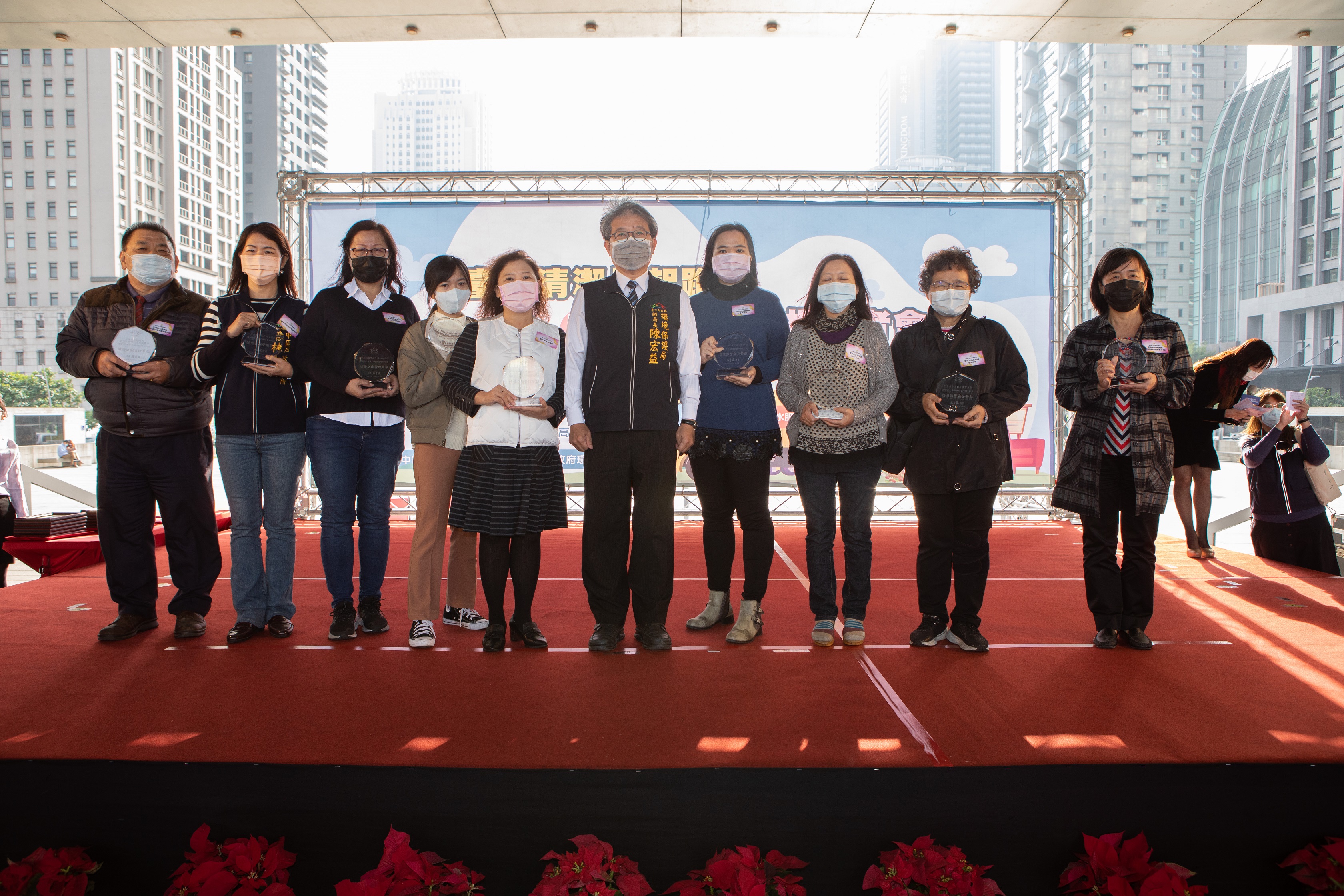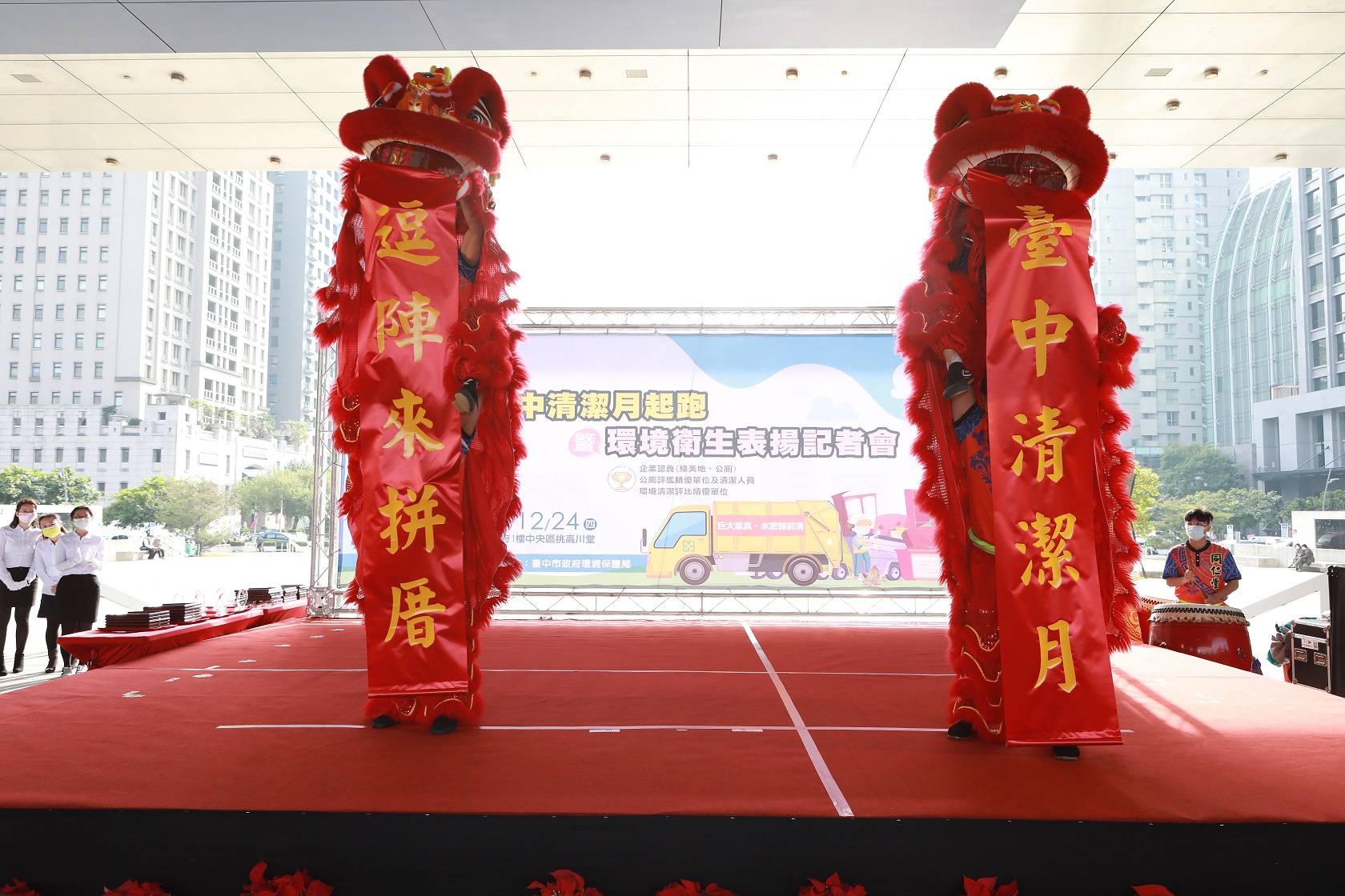 (24)日環保局在市政大樓舉辦「台中清潔月起跑暨環境衛生表揚記者會」,陳代理局長會中肯定所有支持環境認養的企業及環境衛生績優單位與相關人員的付出,表揚30家企業善盡社會責任,投入認養綠美地及公廁行列。
