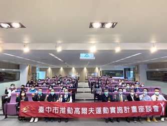 協助台中市國中小學認識高爾夫球運動並扎根普及,台中市政府今(2)日在市政大樓台中廳辦理「推動高爾夫運動實施計畫」中小學校長座談會,邀請中華民國高爾夫球協會分享多年推動經驗,內容涵蓋學校運動社團、代表隊成立及高爾夫球六年振興計畫等,鼓勵開設學校運動社團、代表隊,期盼國中小學生更加認識、參與高爾夫球運動,促進多元發展。