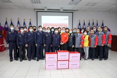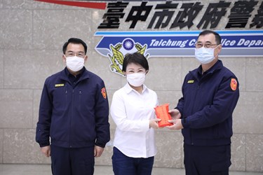 春節連假將至,台中市警察及民防、義警、義交、志工、守望相助隊等相關維安能量不打烊,已自2月3日22時起啟動為期15日的加強重要節日安全維護工作。市長盧秀燕體恤第一線人員辛勞,今(5)日上午特別前往警察局頒發加菜金,晚間更率副市長陳子敬及警察局長楊源明等人續至第六分局慰勉員警及協勤民力,並致贈年節禮盒,感謝大家堅守崗位,為市民服務。