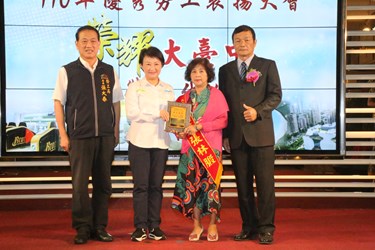 表達對勞工們的感恩之心,大台中職業總工會昨(23)日於東達極品美饌舉行「110年度優秀勞工表揚大會」,特別選在五一勞動節前夕,盛大表揚所屬基層工會302位優秀勞工及10位優秀會務人員。市長盧秀燕出席頒獎,逐一鞠躬致敬,感謝各工會的認真付出及優秀理監事團隊合作無間,讓工會能健全運作會務、為勞工福利不斷努力。