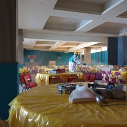 環保局指出,針對該個案足跡曾至沙鹿,沙鹿區清潔隊今日立即出動水霧式消毒車及四位清潔隊成員,以稀釋過的250公升漂白水,於金福華餐廳周邊道路進行公共環境消毒。環保局表示,防疫消毒大隊每月執行1次775處人潮聚集場所戶外公共環境消毒作業,因疫情升溫,防疫消毒大隊即日起將於每周加強執行交通場站(如台中火車站、高鐵台中站、朝馬轉運站、機場)、大型營業場所(如好市多、家樂福、新光三越、大遠百、中友等百貨業或量販店)、人潮聚集民生熱點(如逢甲夜市、一中商圈、市場)、觀光景點(如中央公園、后豐鐵馬道)等209處高風險場域防疫消毒工作,盡力防堵疫情擴散。