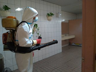 秘書處指出,今(16)日預防性針對人員較常出入與接觸的室內公共空間,包含1樓中庭聯合洽公區、各樓層走道、明梯、安全梯、廁所、地下停車場、公用會議室及集會堂等,使用有效的殺菌劑全面進行消毒、殺菌,以防止接觸傳染可能;另也將臥式空調箱內部鰭片消毒、出風口清潔,防堵病毒空氣傳播,各項消毒工作將預計執行至國內疫情趨緩為止。