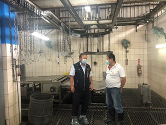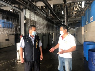 國內新冠肺炎疫情嚴峻,台中市政府積極配合中央落實防疫,農業局長蔡精強昨(26)日率隊至屠宰場督察並宣導防疫措施。蔡局長表示,屠宰場是台中畜禽產品穩定供應重要管道,避免疫情衝擊民生必需品供應量,須確保營運不間斷,因此加強督導屠宰場落實防疫措施,全力維護畜禽產品價格平穩。