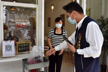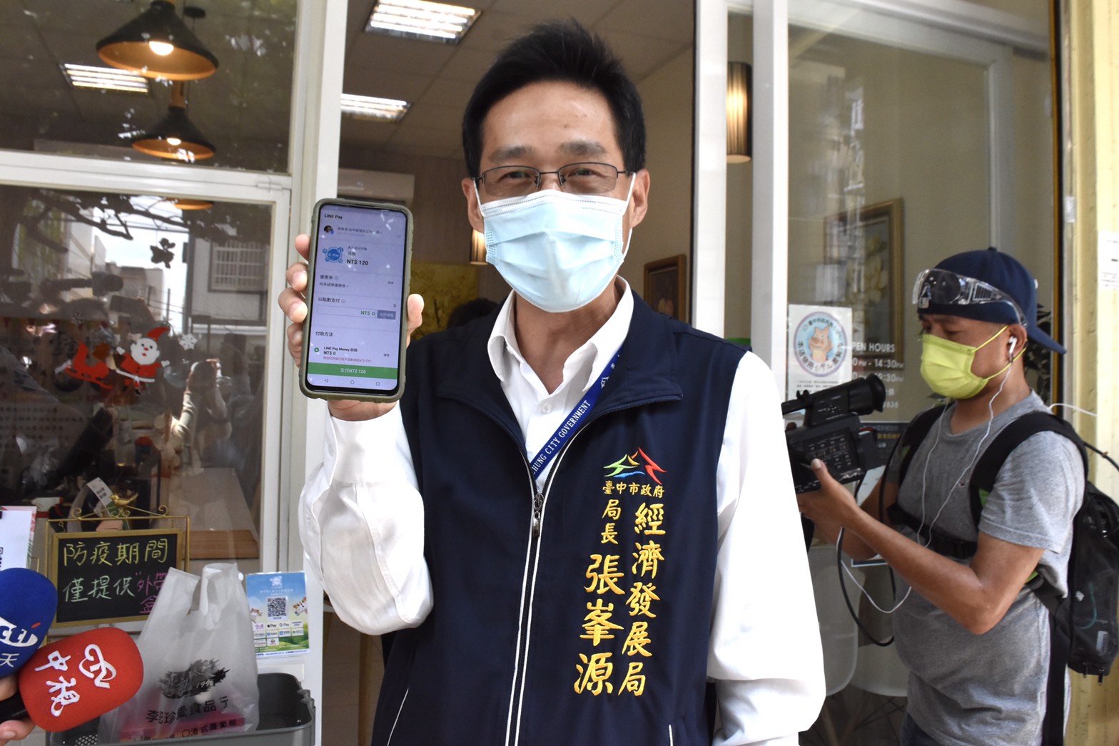 因應新冠肺炎疫情,台中市長盧秀燕推動防疫新生活運動,鼓勵民眾多使用行動支付,減少現金接觸。經發局長張峯源今(3)日特地前往東海藝術街商圈宣導「零接觸」購物運動,提倡「掃碼免接觸」、「付款少停留」及「交易享回饋」三大優點,不僅降低疫情風險,更可享有專屬優惠,呼籲民眾共同響應。