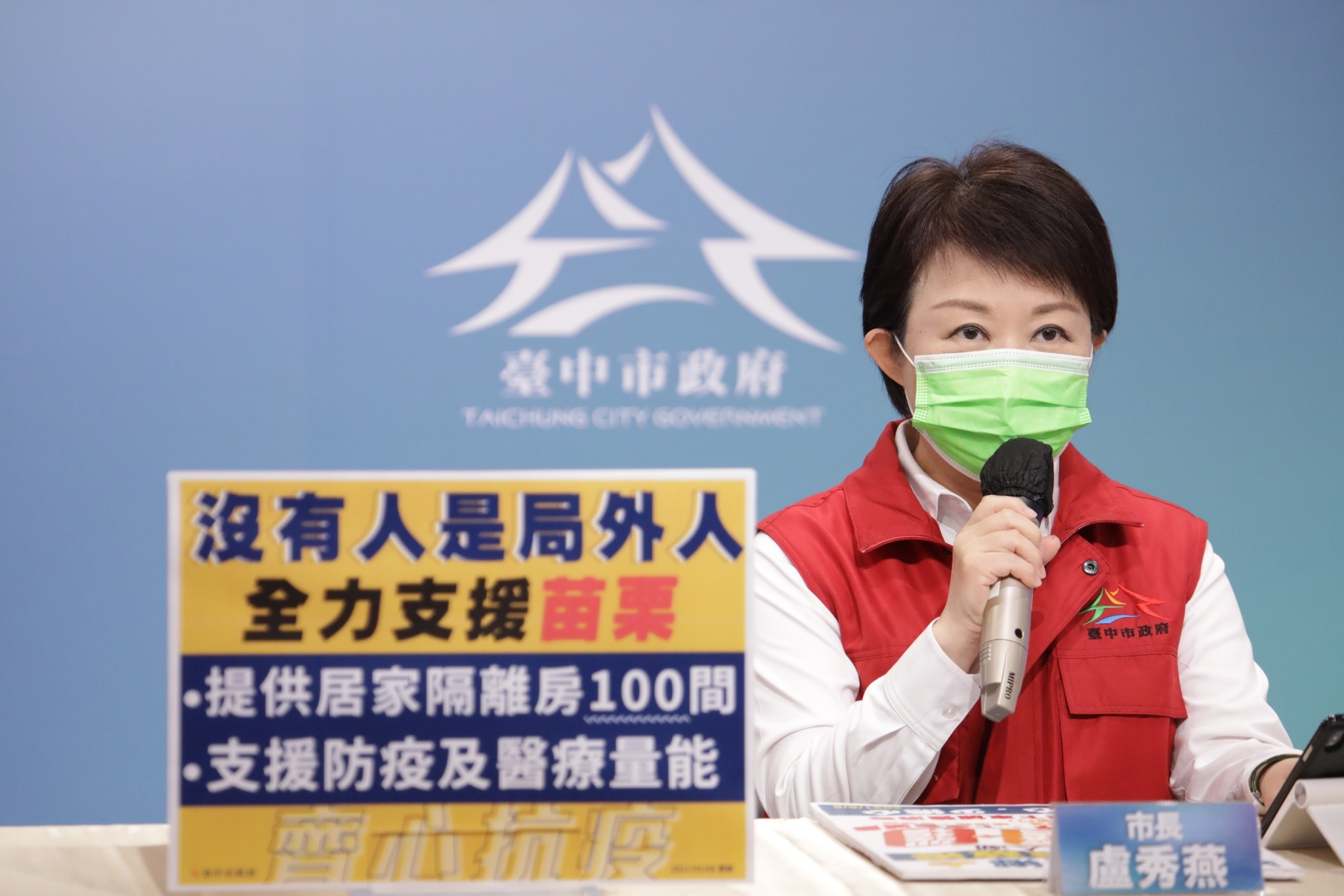 國內疫情嚴峻,苗栗縣科技廠爆發外籍移工群聚感染,接觸者數量暴增,但苗栗縣內收住居家隔離者的集中檢疫所或防疫旅館量能有限,因此向台中市尋求支援。台中市長盧秀燕今(8)日表示,經盤點台中市居家檢疫替代所尚有餘裕,台中願意幫忙,將全力支援居家檢疫替代所100間房,也會提供醫療支援,「防疫關頭,沒有人是局外人!」