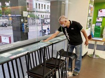 全家台中福揚店蔣兆謀店長指出,去年響應環保加入環境友善店家,平時就很重視店家附近環境清理工作,也做好相關防疫措施,並保持店內環境整潔,櫃檯週邊清潔消毒已是基本日常,顧客也很願意配合「1922 簡訊實聯制」登記作業、保持適當社交距離、入店前酒精消毒、佩戴口罩等相關防疫措施;現在起也會落實「5055消毒法」,定時擦拭店內客人可能會碰觸到的貨架及公共區域,共體時艱一起為防疫努力。