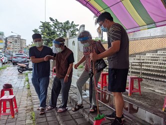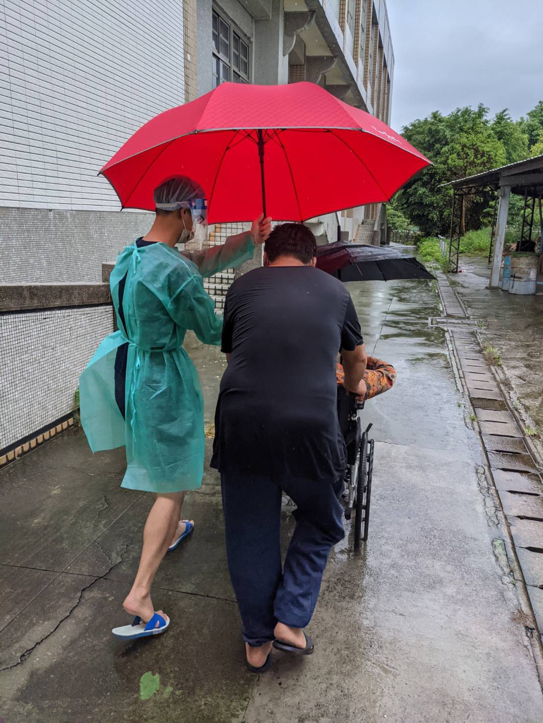 長者打疫苗遇大雨 撐傘攙扶人力拐杖成最美風景