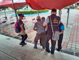 吳局長說明,這兩天行動不便或乘坐輪椅前往快打站接種的的長者為數不少,工作人員擔心降雨會增加老人家跌倒風險,除了幫忙撐傘溫柔攙扶,也會充當長輩的拐杖給予扶持,減少長者行動的不便。此外,太平區快打站也在地面積水處鋪設防滑地墊及無障礙止滑斜坡,北區五權國中快打站也鋪設塑膠止滑紅地毯,讓施打疫苗的流程不致受降雨影響,更讓到場施打疫苗的長者及家屬備感暖心。