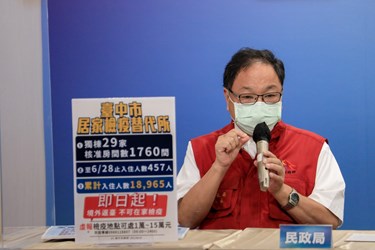 吳局長進一步指出,台中市居家檢疫替代所共有29家,房間數為1760間,截至今日止共入住457人,量能足夠,而其中5家市民館提供台中市民及在台中求學、工作者有檢疫需求者申請入住,居家檢疫替代所每日收費20003000元不等(含三餐及住宿),視入住房型收費,一人一房,具單獨衛浴及空調,讓有需求的民眾安心度過14天檢疫期,降低疫情擴散風險。