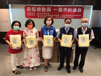 向日葵基金會董事長陳俗蓉指出,響應快樂天堂基金會董事長林傳凱發起防疫物資勸募,並號召台中市警察志工協會理事長游信對、台中市民衆服務社理事長、忠興織造廠股份有限公司董事長郭元瑾一同共襄盛舉,順利募得拋棄式防護衣1萬件,秉持「發揮愛,救台灣」的精神,捐贈中市府疫苗快打站防疫物資,與市府防疫人員齊心抗疫,同時為前線戰士加油打氣,共同守護市民健康安全。