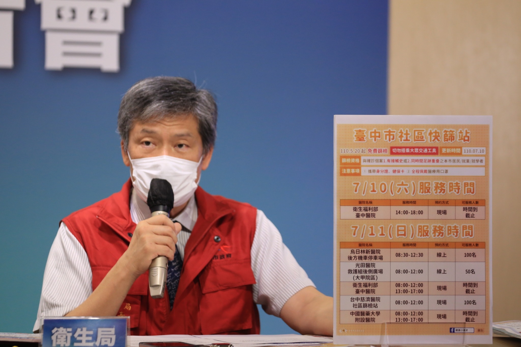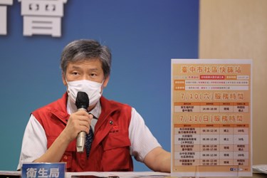 曾局長表示,市府針對今日2例確診個案,特別於今明兩日啟動快篩站,今日下午2時至6時開放部立台中醫院採現場快篩服務;明日則開放烏日林新醫院、光田醫院、部立台中醫院、台中慈濟醫院、中國醫藥大學附設醫院,採線上預約或現場快篩服務,民眾如與個案有接觸史或足跡重疊者可前往上述快篩站篩檢,提醒市民朋友,前往快篩站切勿搭乘大眾運輸工具,且務必全程佩戴口罩,以維護自己及親愛家人的健康。
