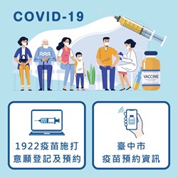而為方便服務櫃台同仁迅速提供疫苗預約平台連結說明,民政局即時整合升級「台中戶政ONLINE」官方帳號防疫相關資訊,除原先即有的「簡訊實聯制QR-CDODE掃描」、「台中市防疫專區」及「居家檢疫線上申請」連結資訊,此次新增「公費疫苗預約登記」查詢功能,並提供「1922疫苗施打意願登記及預約」及「台中市疫苗預約資訊」網址連結,將分散在不同網站的訊息統整,協助民眾快速查找,輕鬆掌握防疫資訊。