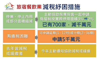 中市府主動協助減免 餐廳業旅館業減房屋稅近千萬