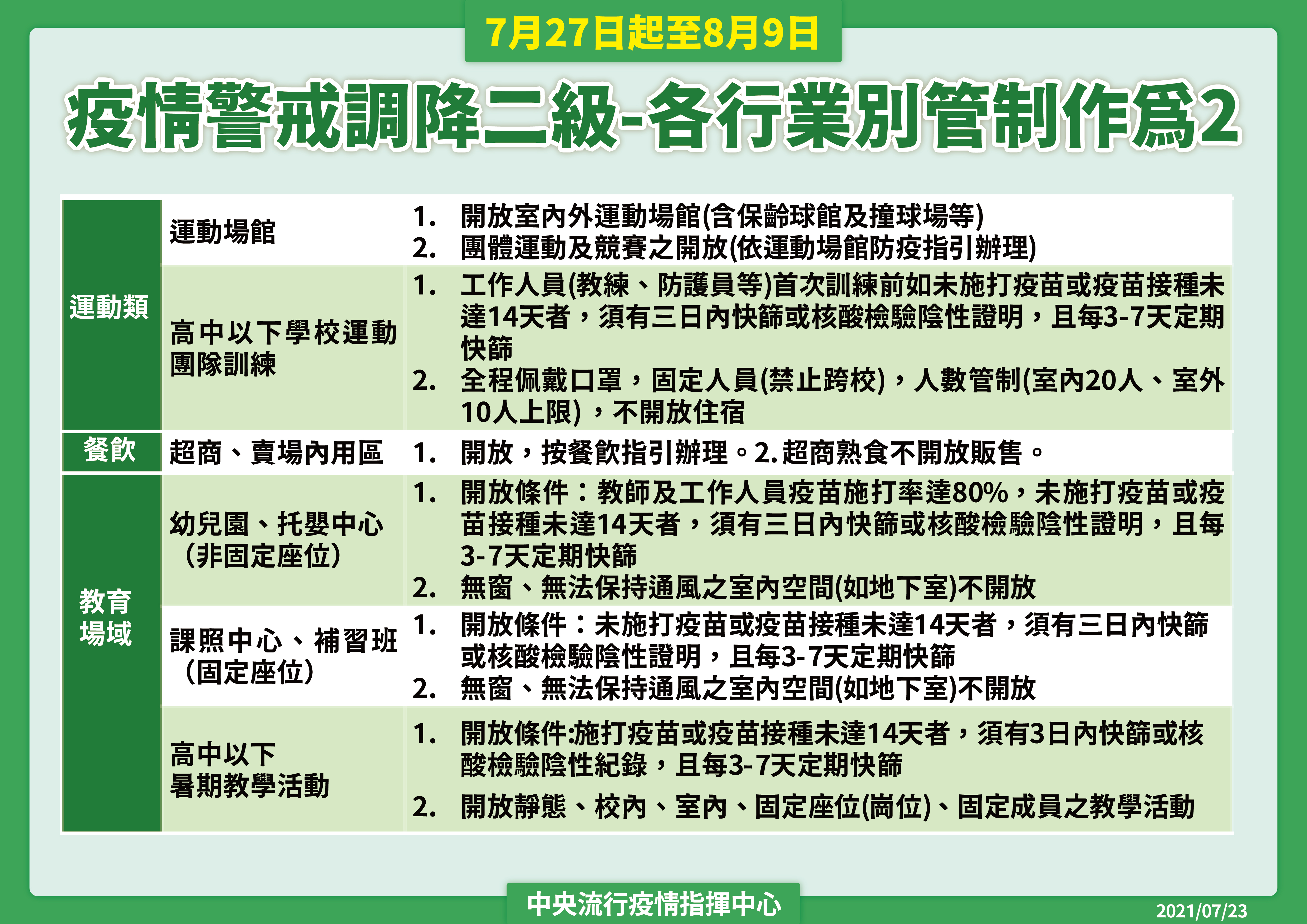 7/27起全國降至二級警戒 中市室內外運動場館適度放寬