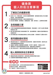 另外,國民運動中心、港區運動公園(不包括所轄游泳池及跳水池)配合防疫規定及防疫管理指引得開放使用;公立戶外運動場域方面,若現場有專人管理,可落實並管控實聯()制者,得開放使用;步道、操場或田徑場等屬走動式不接觸設施亦開放使用,但附設兒童遊具或體健設施等因難以保持社交安全距離、即時消毒及落實實聯()制,仍暫停開放。