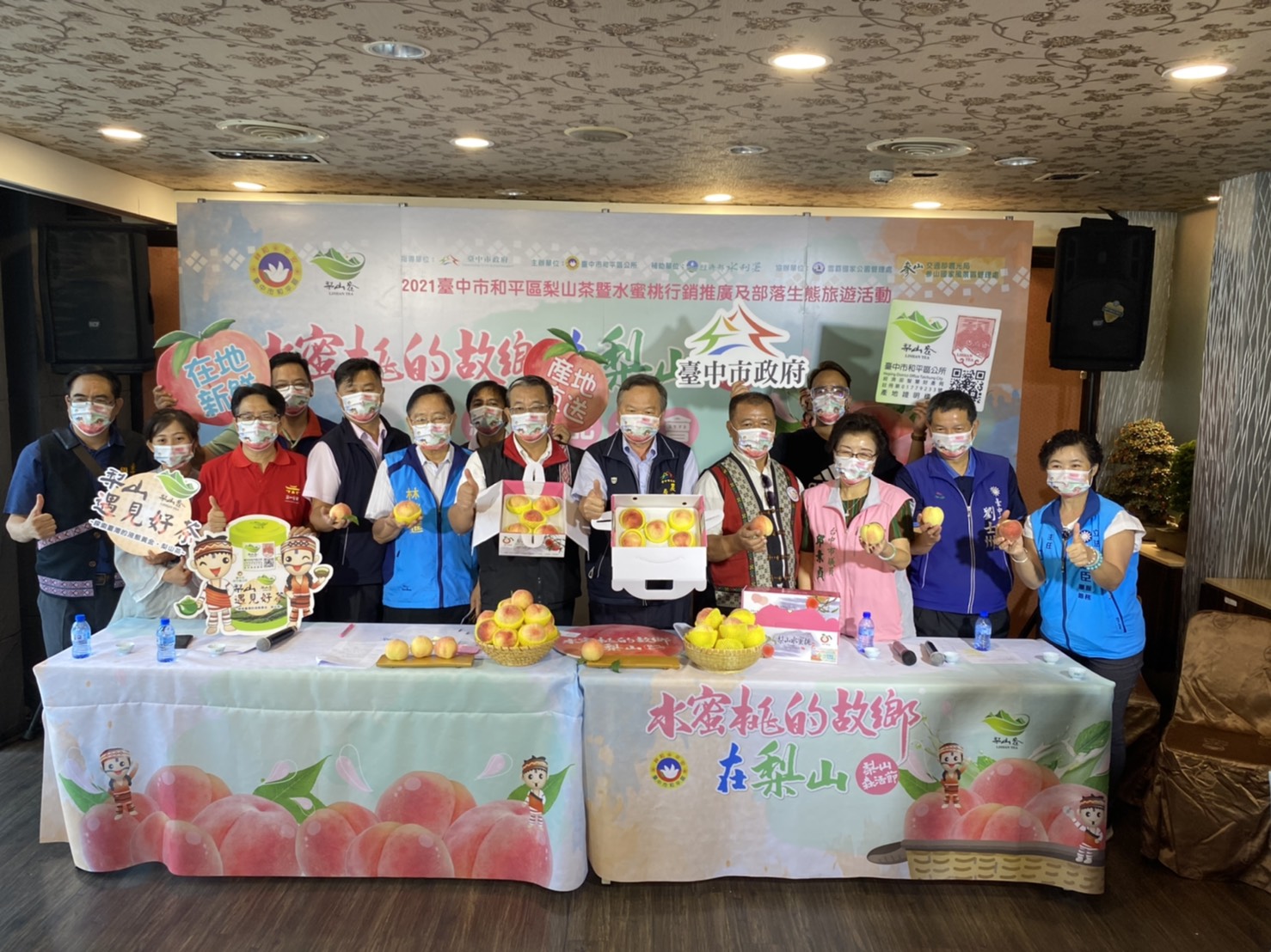 今日「2021梨山森活節.水蜜桃的故鄉在梨山」記者會,包括農業局長蔡精強、財政局長羅仙法、西區長王瑞嘉、市議員劉士州、邱素貞、林榮進、朱元宏等人均出席參與,並同步與和平區長吳萬福、梨山里長賴盛功、台灣楓康超市黎明店長黃祺紘等人視訊一同推廣;立法委員江啟臣也派代表到場。「2021梨山森活節.水蜜桃的故鄉在梨山」相關活動詳情可至官方粉絲團( https://www.facebook.com/lisanpeach/ )查詢,或洽04-23728865活動小組。(7/28*6)*農業局