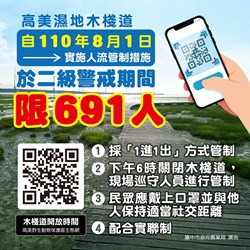 高美濕地木棧道0801起重新開放  人流管制上限691人