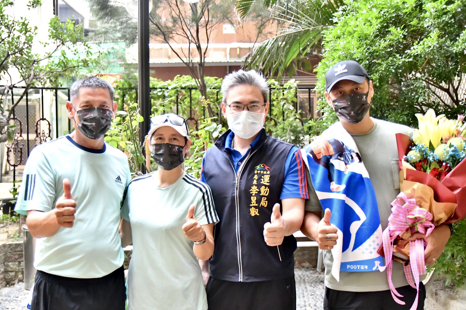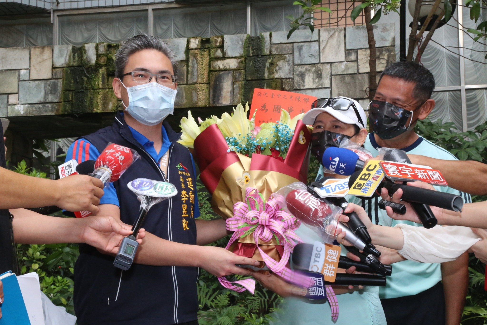 運動局李局長今日代表盧市長到奧運代表選手陳傑家中致意,他表示,陳傑歷經多年的努力,曾經在全國運動會場上代表台中拿到六連霸,今年奧運則是陳傑第三度參加奧運,歷經整整12年,很感謝選手堅持奮戰的精神感動國人,今天由他代表市長送上一束花「謝謝陳爸爸、陳媽媽」陪伴陳傑一起努力。