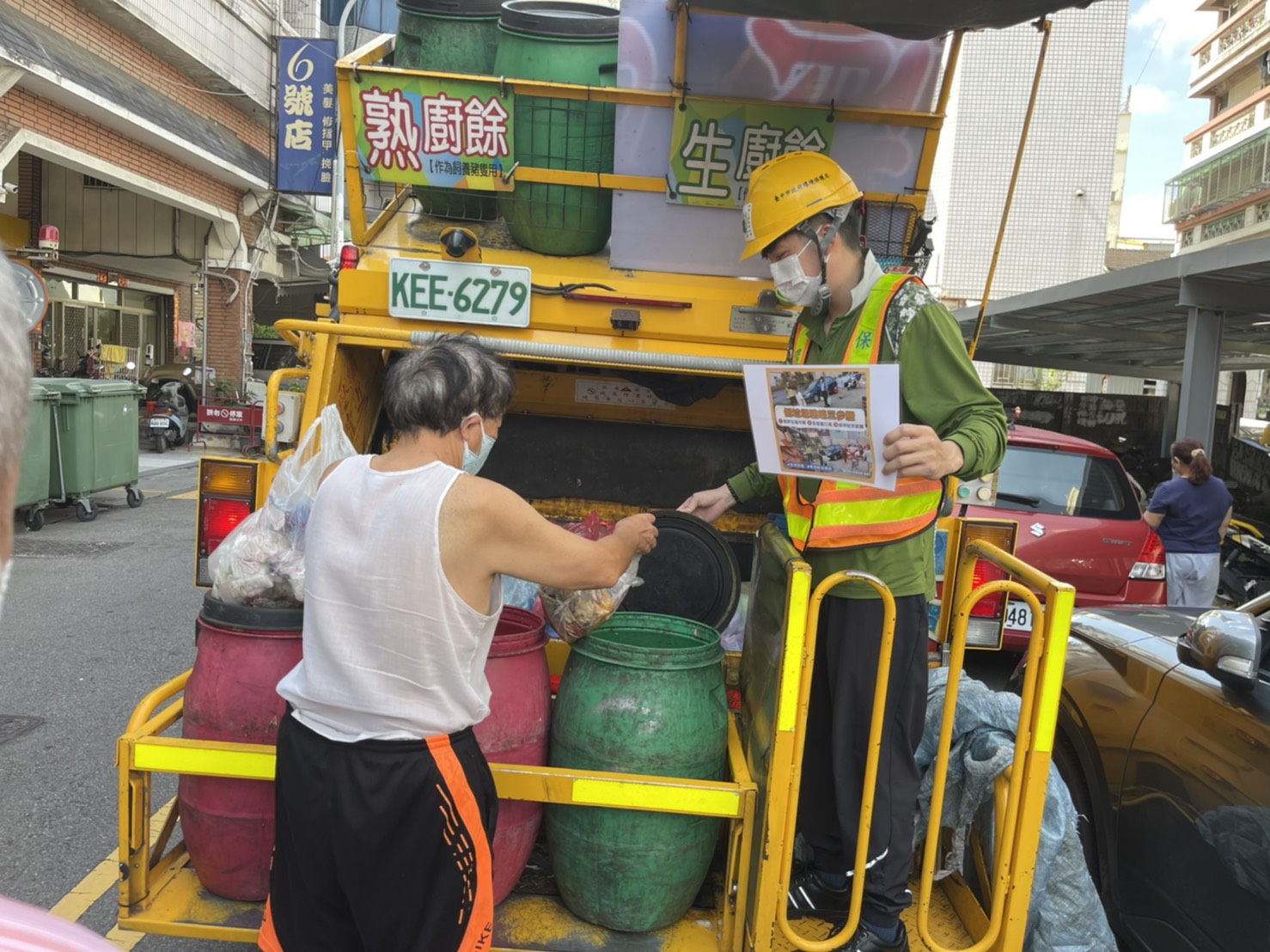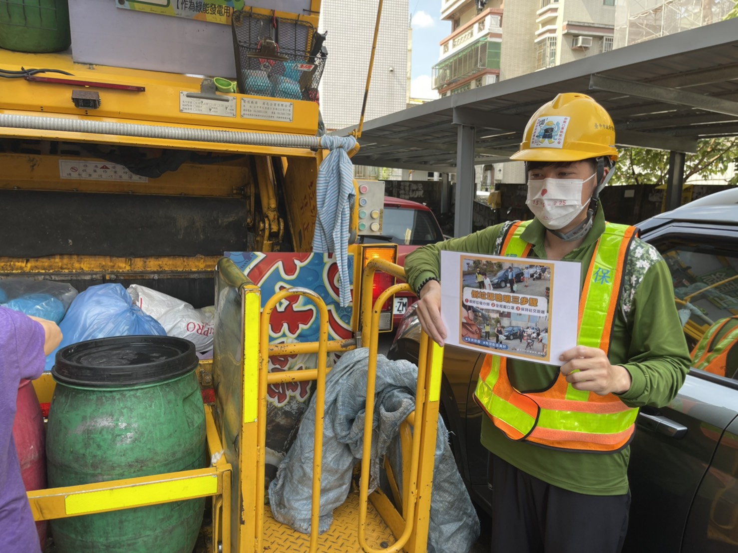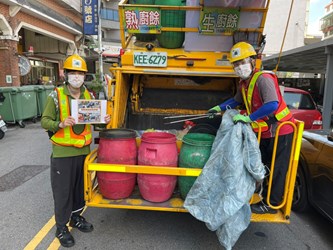 你保持「愛的社交距離」了嗎? 中市清潔隊員戴特製口罩勤宣導