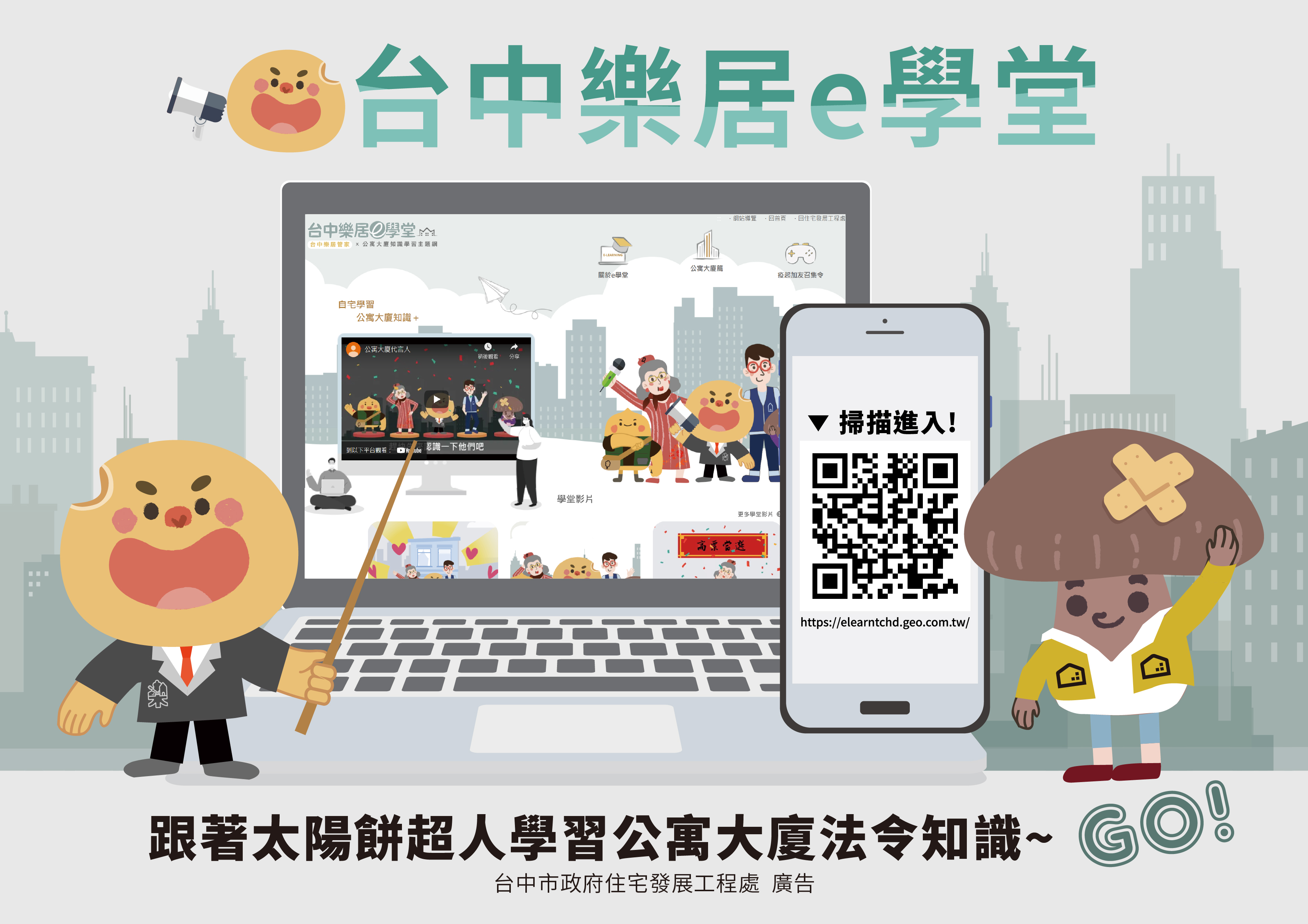 住宅處表示,「台中樂居e學堂」動畫系列,以每部5分鐘動畫微學習為概念,動畫主角以社會住宅吉祥物「太陽餅超人」為原型,增加公寓大廈番外篇設計,藉由角色間的社區日常互動,介紹相關公寓大廈法令知識,讓市民認識一「廈」。