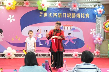 為推廣客語文化傳承,鼓勵世代間語言交流,台中市政府客委會特別舉辦兩場「2021世代客語口說藝術比賽」,無論是父母和子女、叔姪和甥舅、祖孫和師生,不同世代的大小朋友都可組隊參賽,首場今(5)日於新盛國小熱鬧登場。今年報名隊伍中有多隊祖孫同台,說學逗唱,讓現場笑聲不斷。客委會指出,透過親子互動共學,讓彼此更能親近客語、喜歡客語,讓語言傳承不間斷。