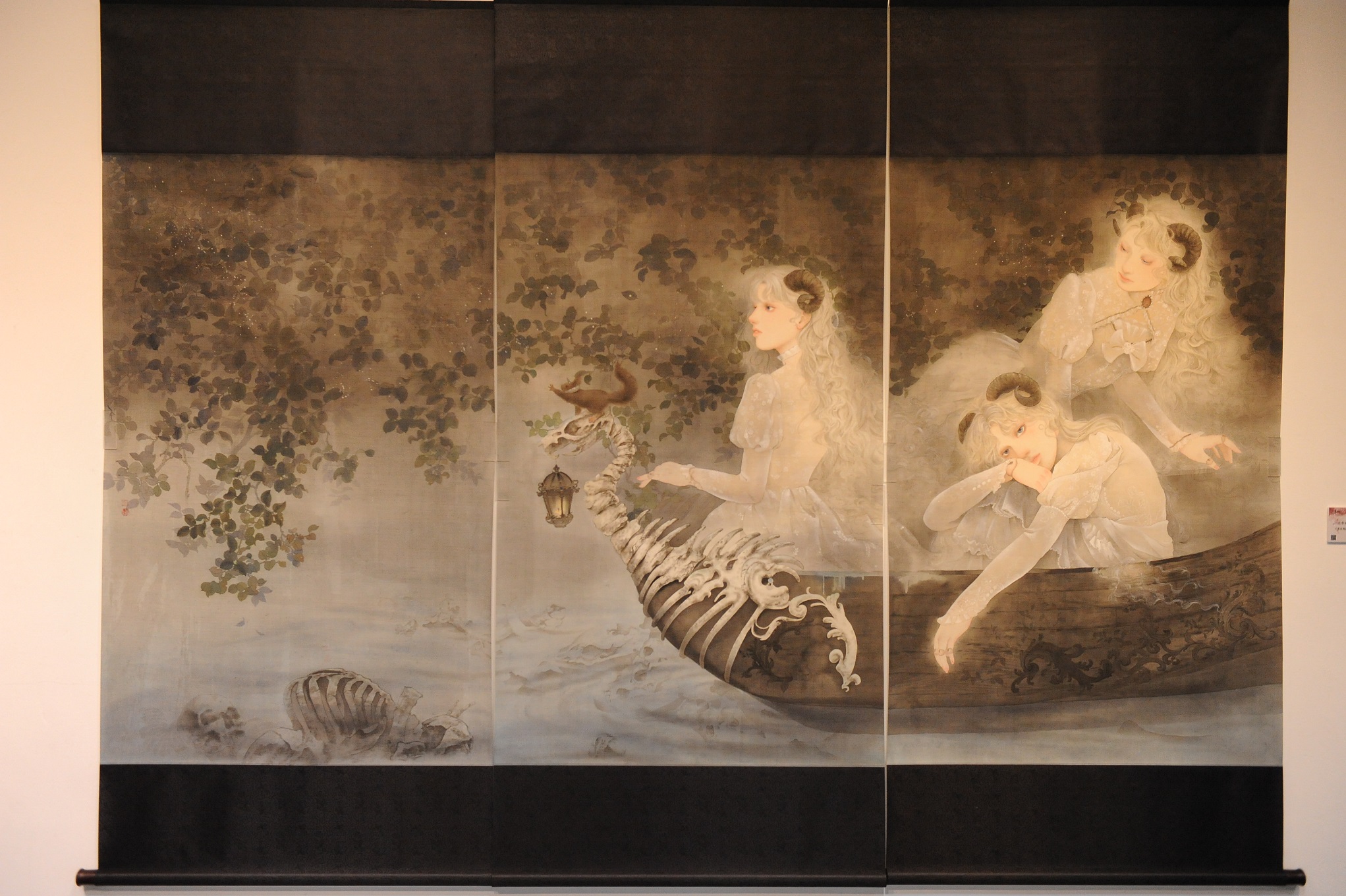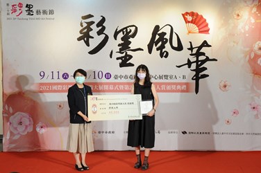 此外,國立台灣藝術大學書畫藝術學系沈亭妘同學榮獲彩墨新人賞的特優獎,作品《漂流傀儡》透過複合圖像手法,營造想像游移的夢幻情境,細緻的形象描繪與豐富的墨韻敷染,讓作品輕柔中帶有強大力度,陳局長也特別感謝欣中天然氣股份有限公司長期支持藝文活動,贊助彩墨新人賞全額獎金,攜手栽培藝術新生代。